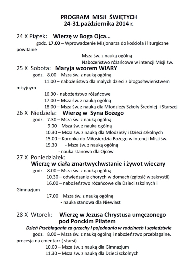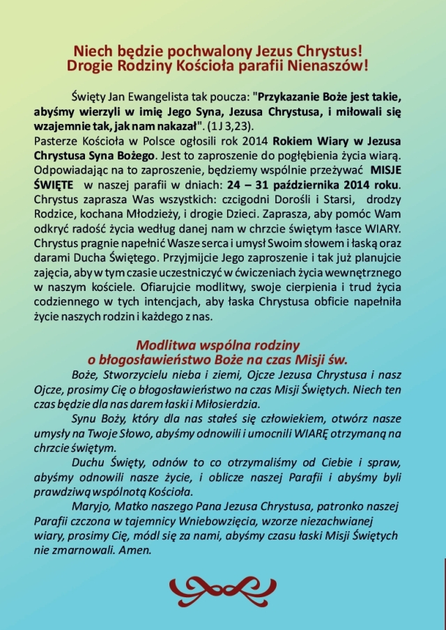 Drogie Rodziny Kościoła parafii Nienaszów!