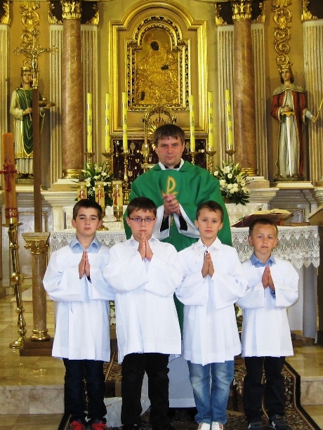 W niedzielę 21 września 2014 r. na Mszy Świętej o godz. 9.00 do Służby Liturgicznej Ołtarza Ks. Proboszcz Jan Gajda uroczyście przyjął czterech nowych ministrantów.